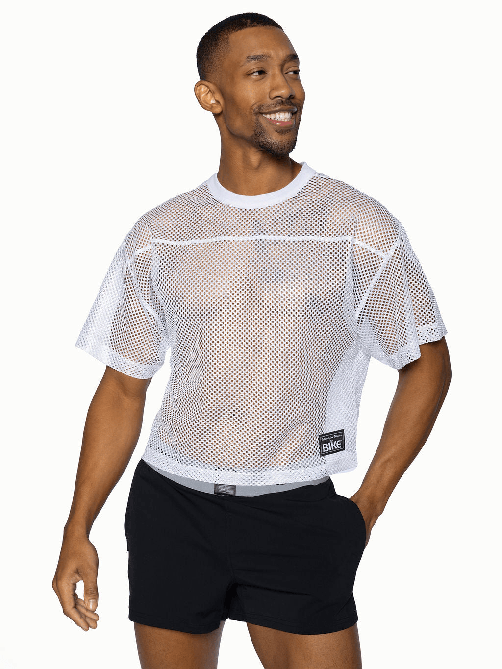 The BIKE® vintage-inspired crop football jersey perfectly combines sporty and sexy. This mesh jersey allows you to look good and help you stay cool on the hottest summer day. Add to your cart, and we will see you at the scrimmage!Â