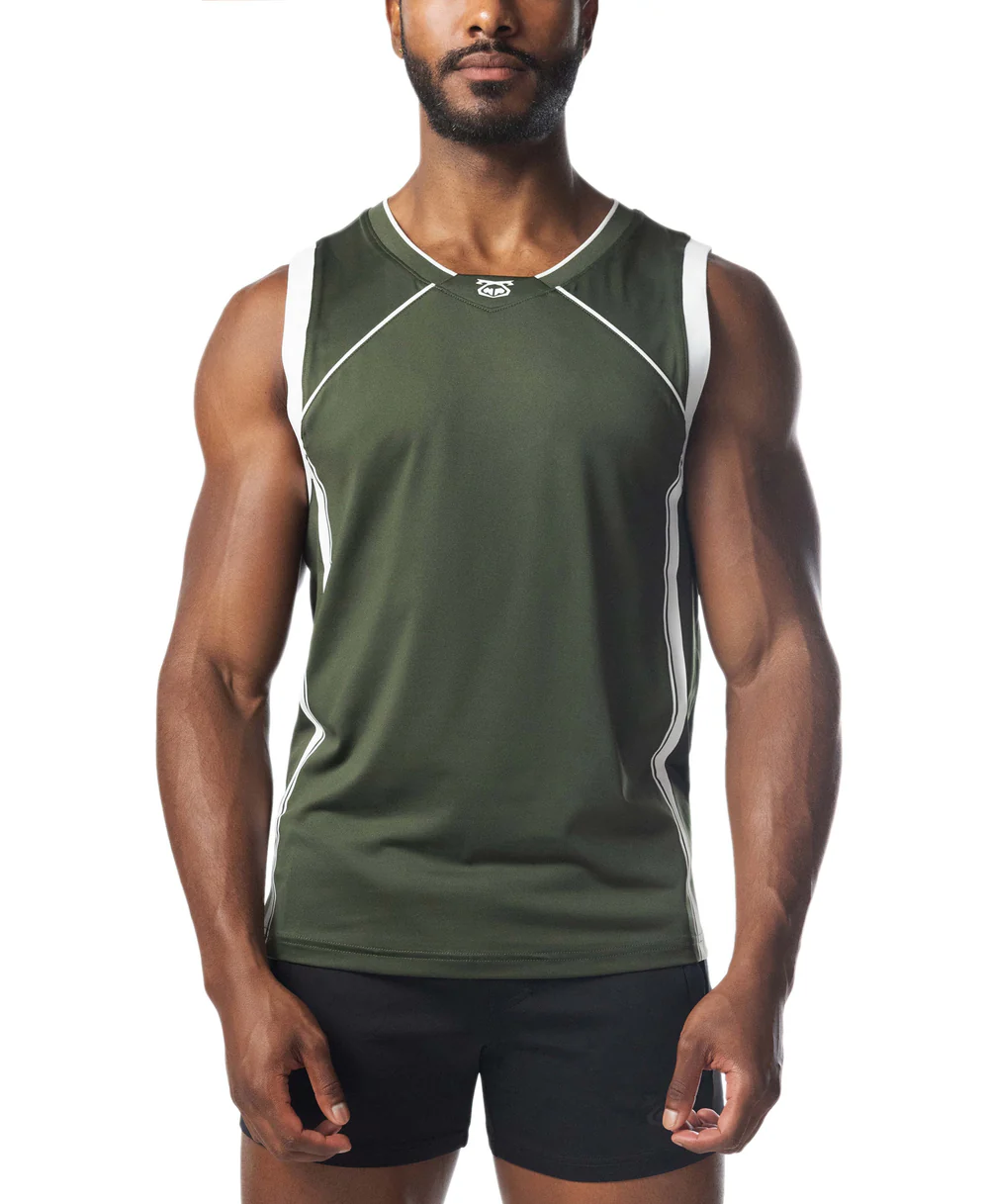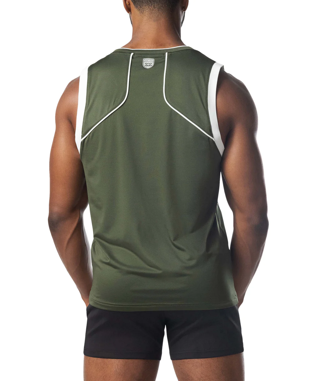 The Goalkeeper Tank Top brings sharp, athletic edge with an army green body, crisp white piping, and the iconic Snout logo at the center chest. The fit is tight, the fabric is light, and the vibe is pure play. Made from breathable fabric that moves with you—on the pitch, at the gym, or deep in the crowd. Sporty, sweaty, and built to score.