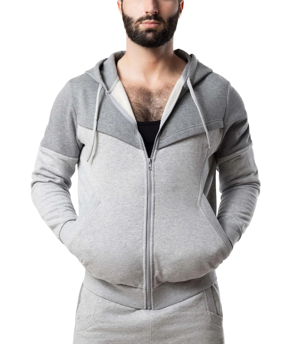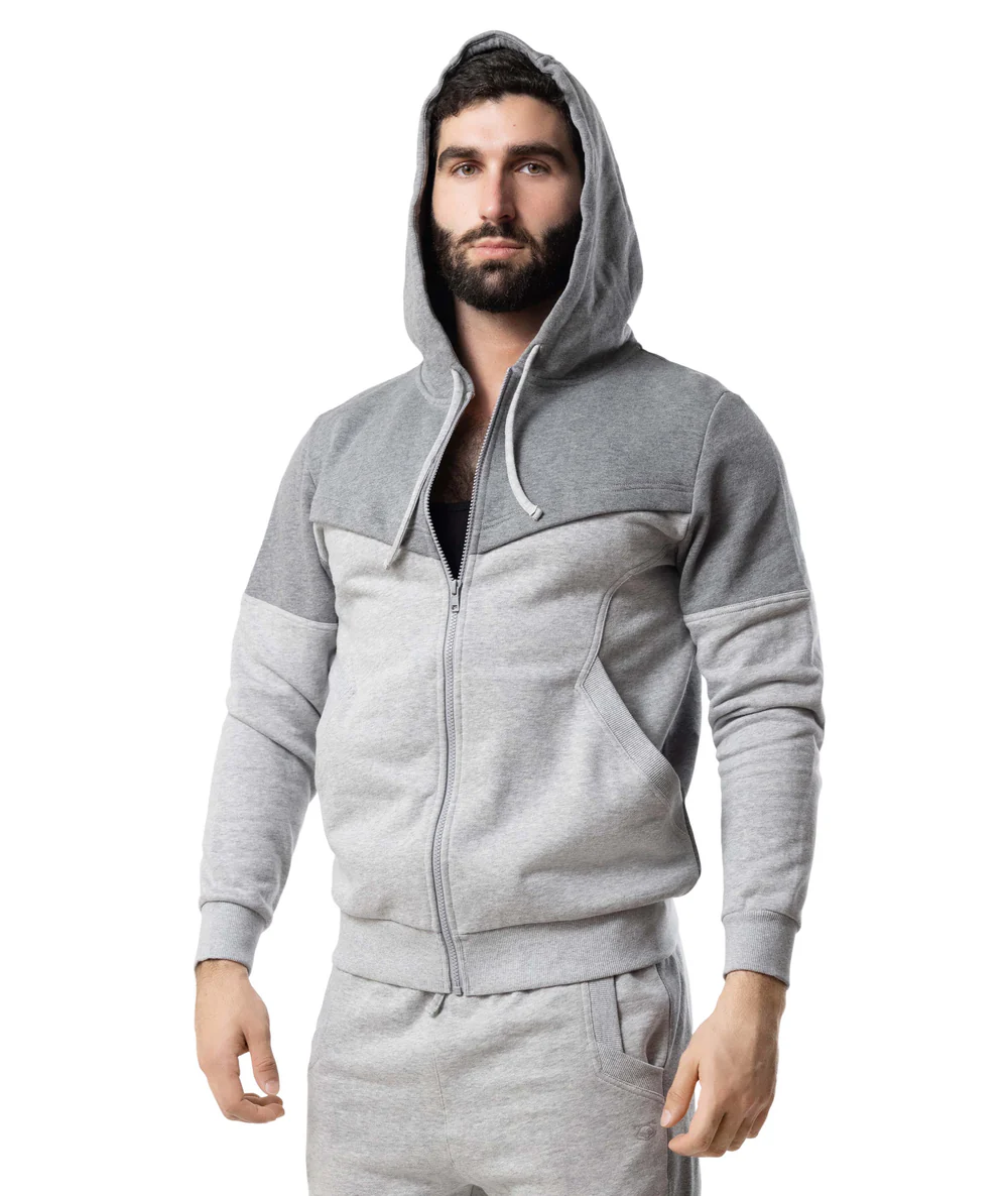 The Nexus Hoodie brings structure and contrast to your everyday look. Two-tone grey paneling sculpts your frame with a sharp, athletic fit. Dual front pockets keep your essentials close, while the adjustable hood and premium YKK zipper make it ready for anything—from gym to street to club.