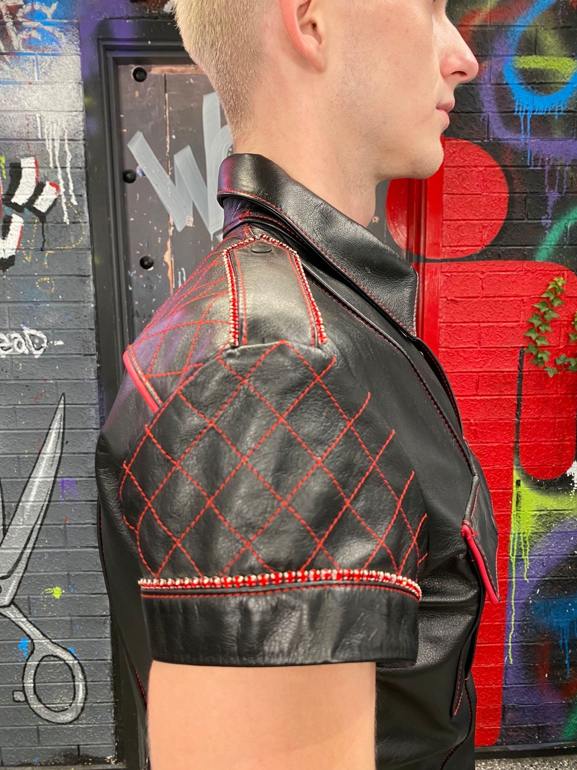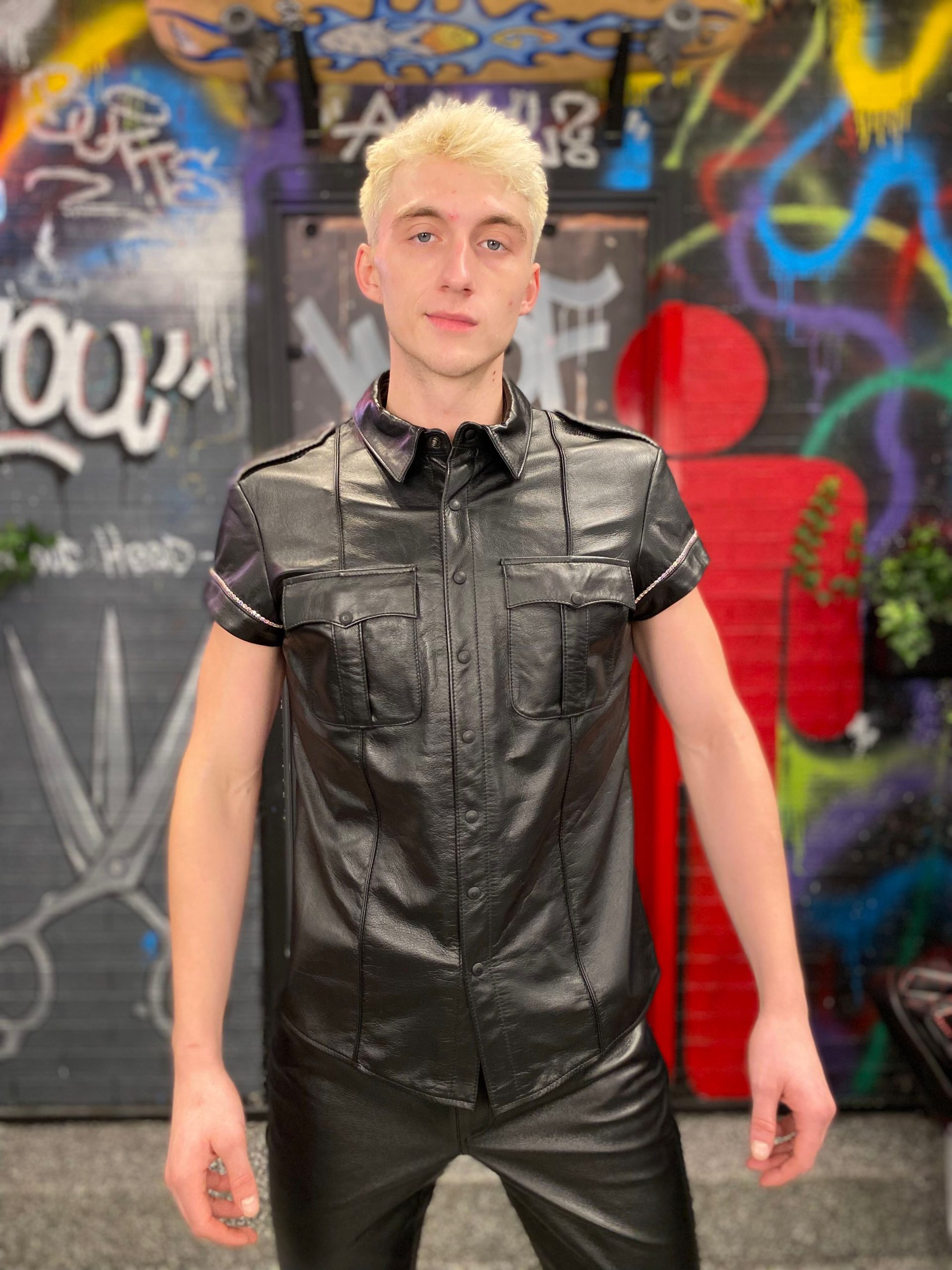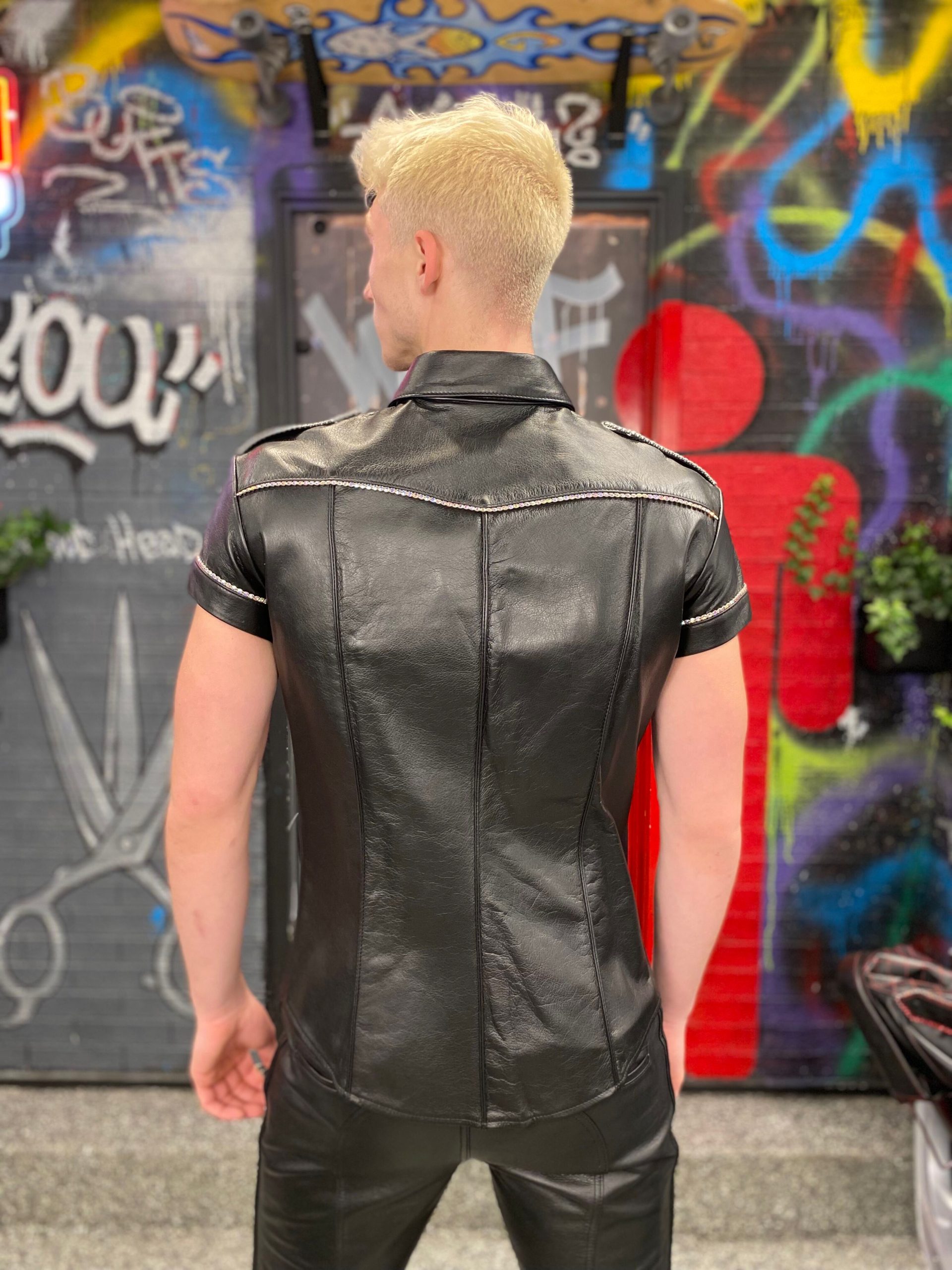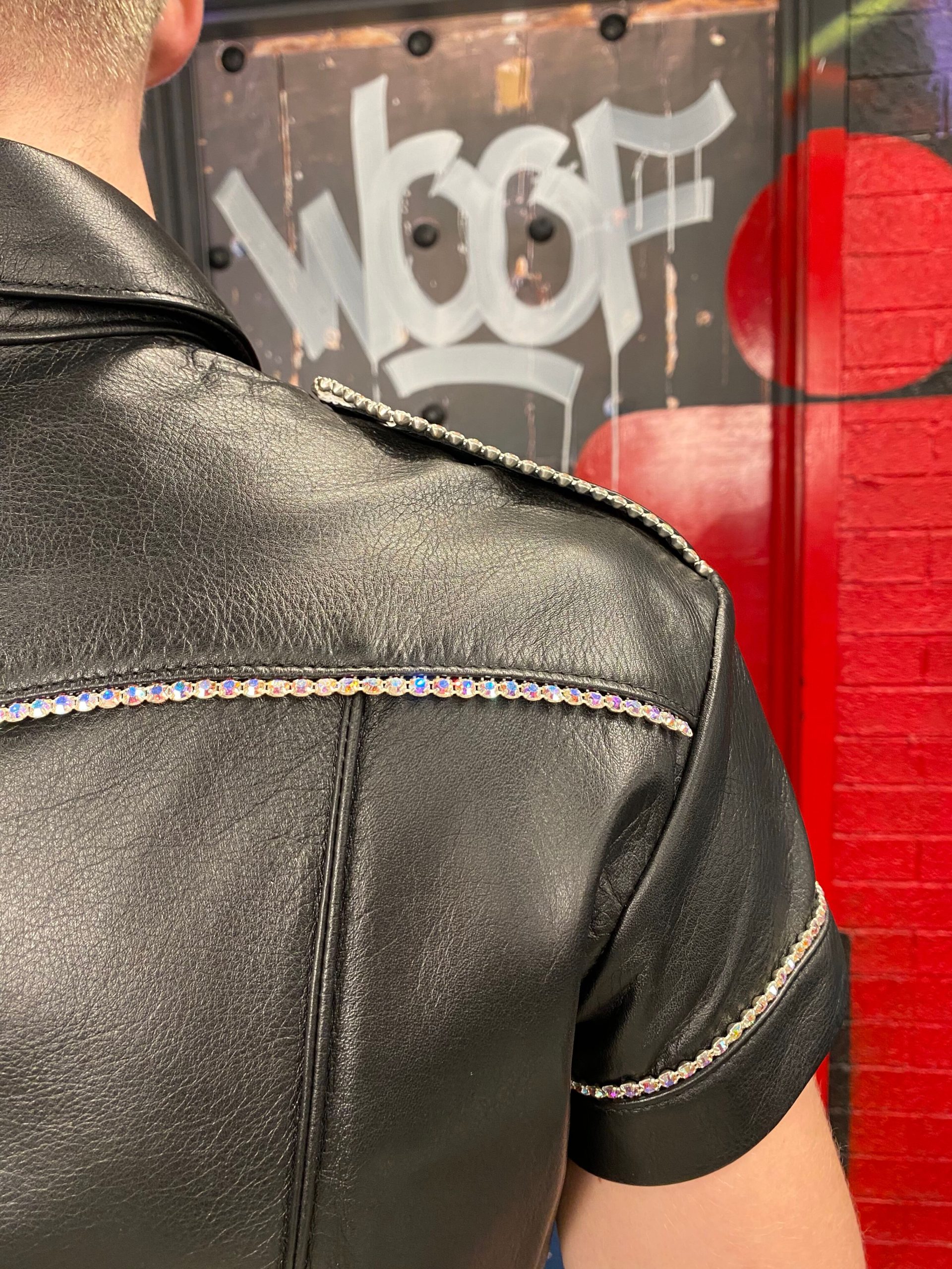 The iconic Northbound Officer’s uniform with addition Swarovski detail is available exclusively online at Men’s Room Chicago. Stand out amoungst the leather contestants and own a one-of-a-kind piece of Northbound hand crafted in Toronto: high-quality and beautifully designed garments that will survive years of use and abuse. Custom-tailored handcrafted garments that will be your fantasies come true.
